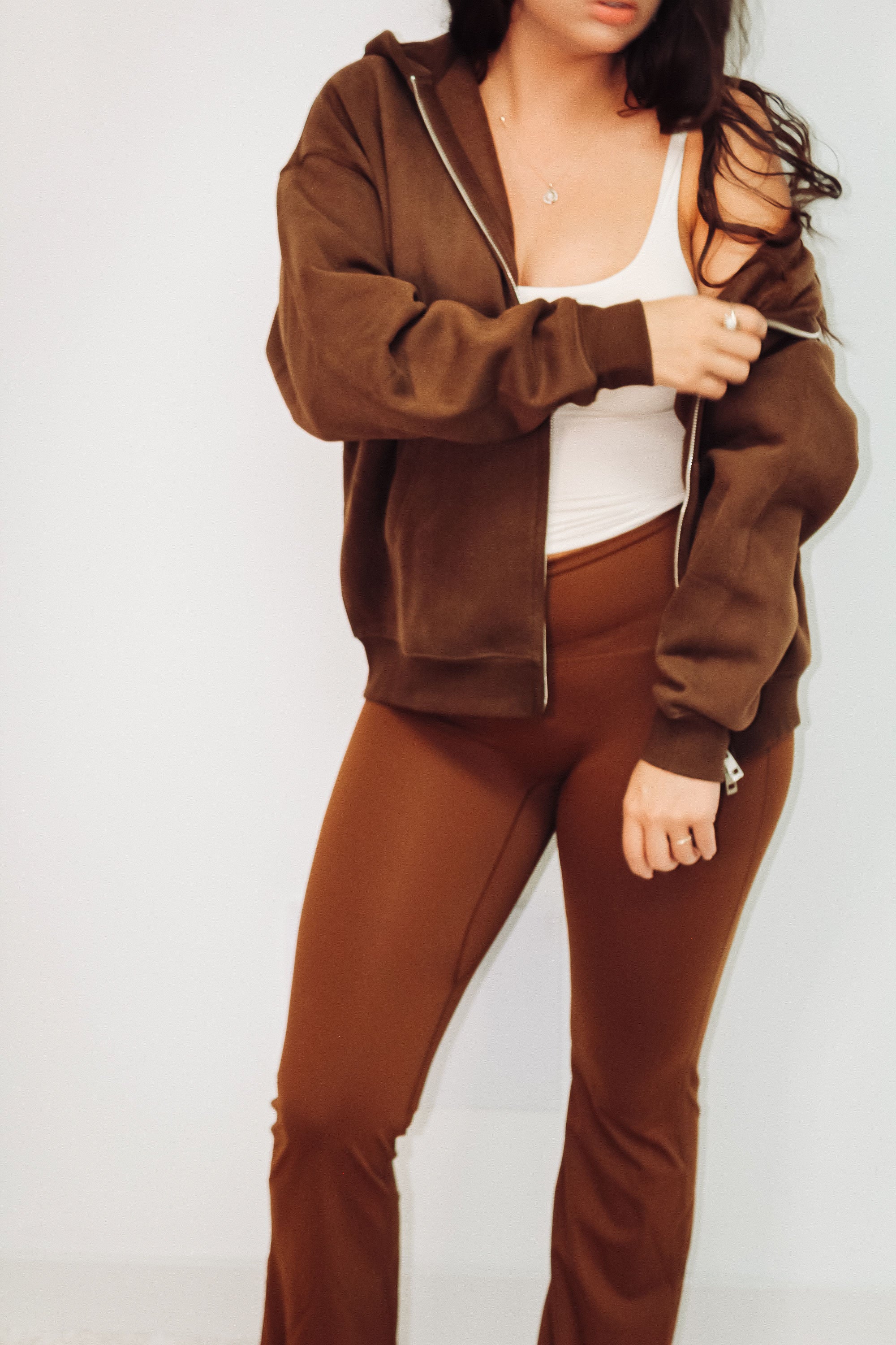 Look lash artist on-the-go : n’importe quel pantalon Plush&Co + hoodie ou veste + lunettes de soleil + ton café préféré.